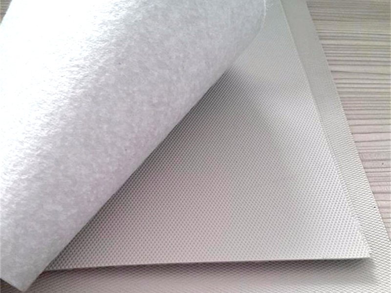 带纤维背衬的热塑性聚烯烃防水卷材:用织物如聚酯无纺布等复合在卷材下表面的热塑性聚烯烃防水卷 材。